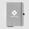 The Carson Notebook is perfect for journaling at home or taking notes in meetings. Its hardcover is made from 75% recycled leather and 25% plastic, and it contains 80 sheets (160 pages) of 70 gsm ivory lined recycled paper. This stylish notebook also features a ribbon marker, stitched binding, elastic closure, and pen loop (pen not included). Personalise with your logo using ColourJet, our full-colour inkjet imprint process.